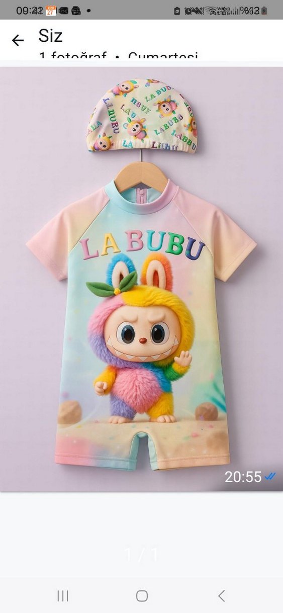 MAYO BONELI..Pastel renklerde, baskılı oyuncu karakter ve dantel detaylı bebek kız tulumu. Şapka ile birlikte yumuşak ve rahat kumaş kullanılmıştır. Optik metin: 'BUBU, 20:55, LAI'.