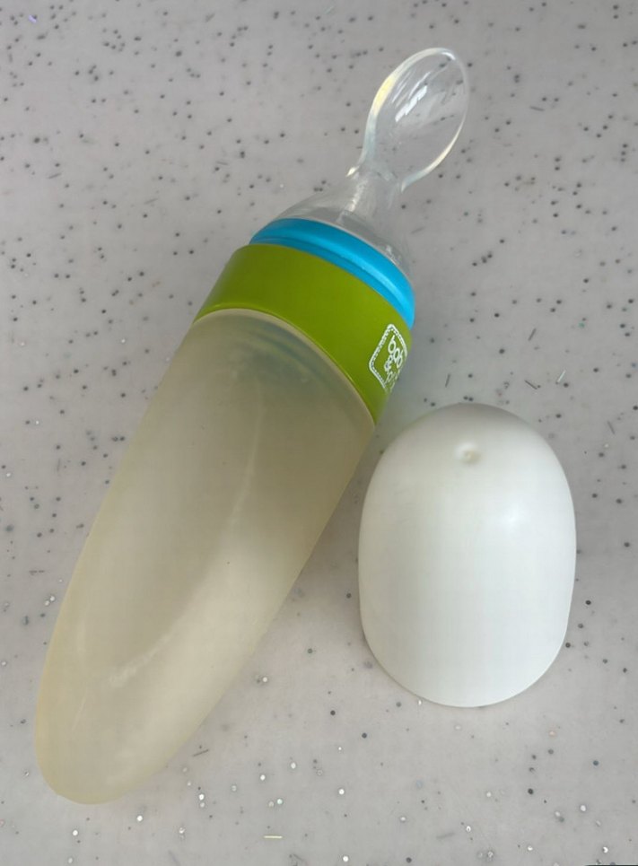 Pastel Renkli Bebek Silikon Sıkma Kaşık Biberon