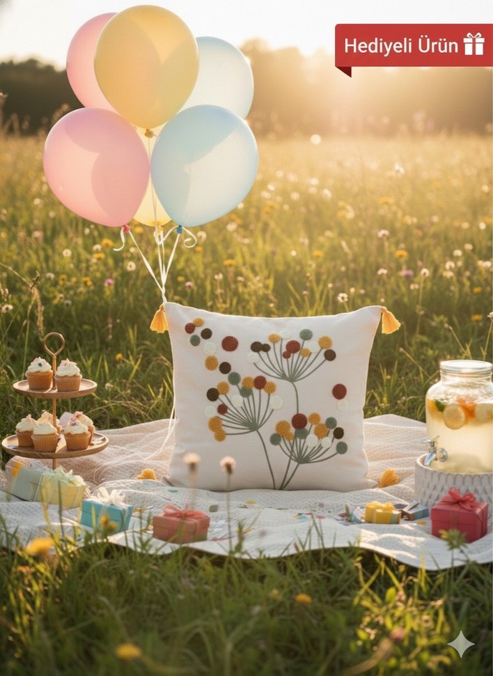 Pastel Renkli Beyaz Parti Balonlu Kirlent kılıfı