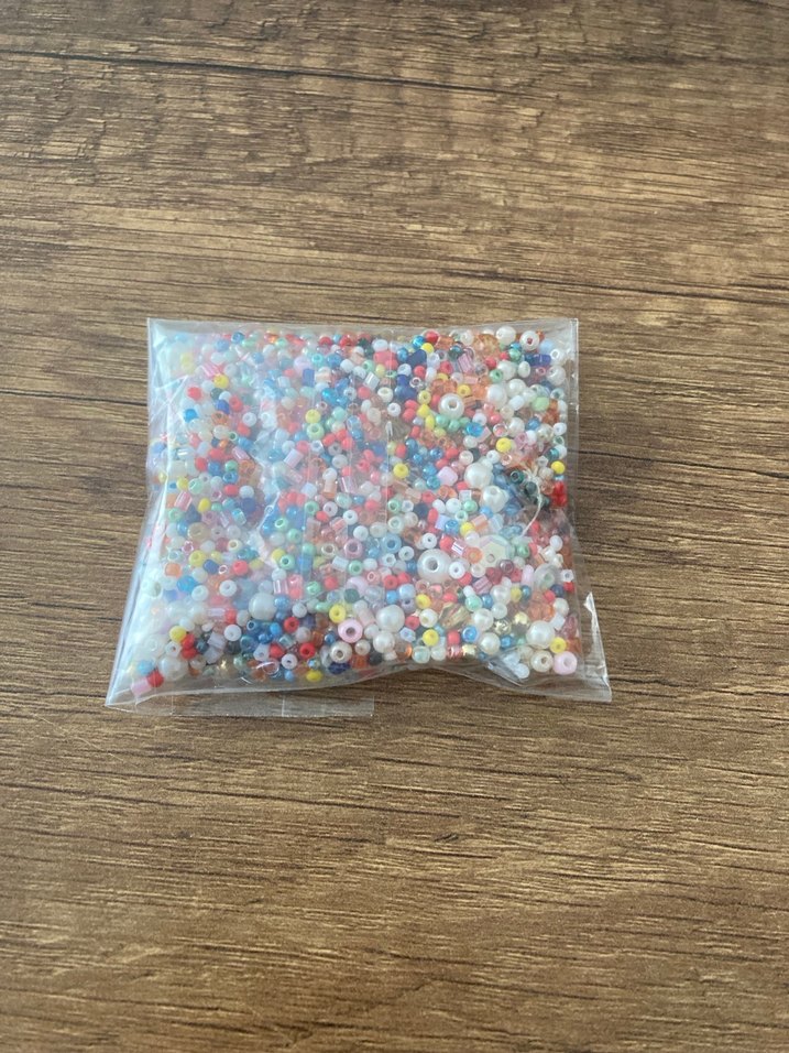 Pastel tonlarda çok renkli boncukları içeren küçük bir paketir