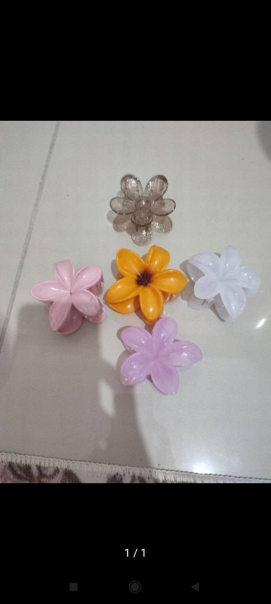 Plastikten yapılmış, boncuk detaylı pastel renkli çiçek saç tokası seti, sade ve minimalist tarz için uygundur.