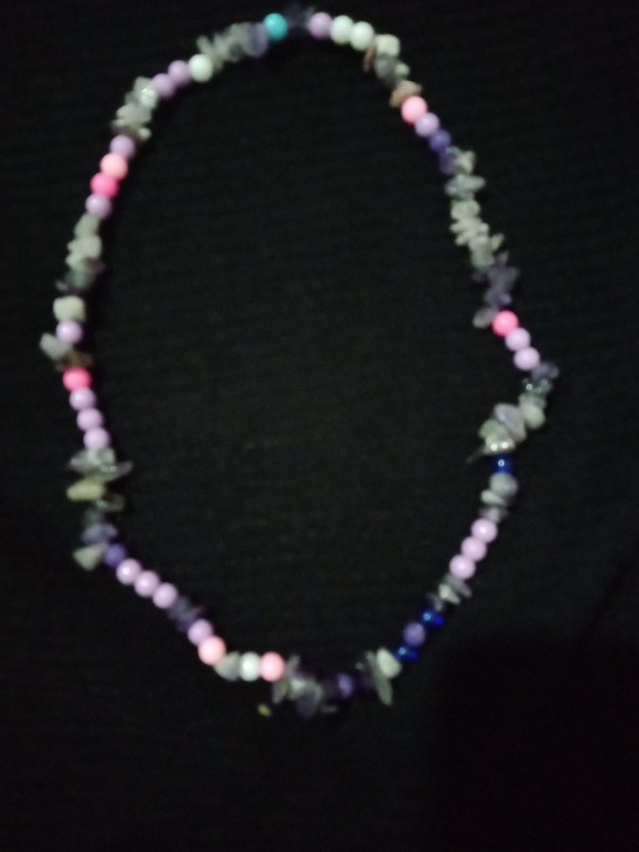 Kadınlar için pastel tonlarda tie-dye desenli boncuklardan oluşan, midi uzunlukta, bohem ve gotik tarzları birleştiren minimalist ve retro görünümlü kolye. Parti için uygun.