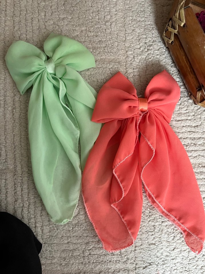 Yumuşak sentetik kumaştan yapılmış pastel renkli büyük fiyonk saç aksesuarları, bohem tarzıyla Paris esintisi sunar.