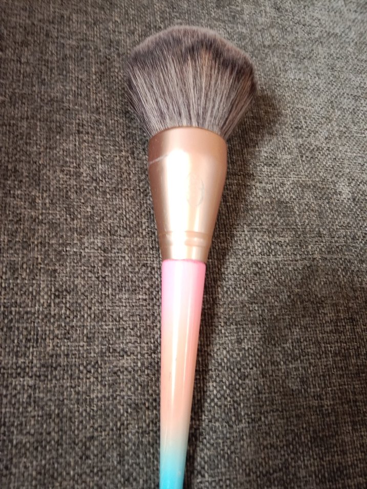 Bej tonlarında, pastel renk saplı yumuşak makyaj fırçası, pürüzsüz uygulama sağlar.az kullanıldı