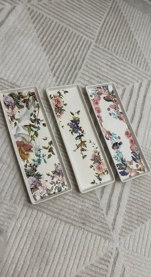 Pastel Renkli Çiçek Desenli Dikdörtgen Tabaklar