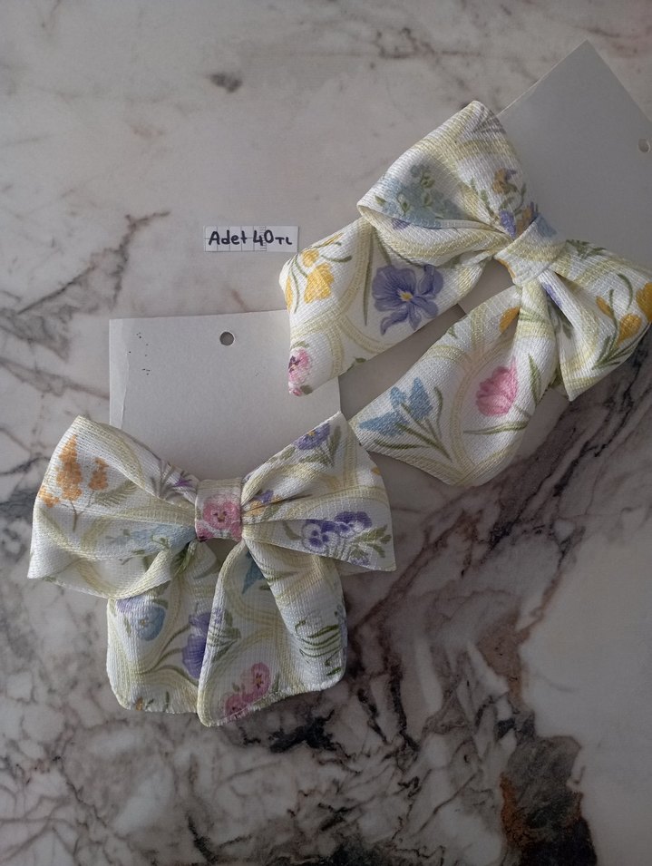 Pastel Renkli Çiçek Desenli Fiyonk Toka