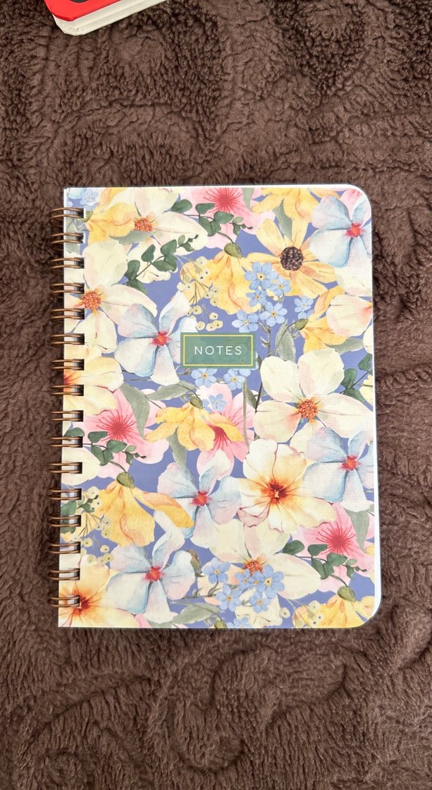 Pastel renklerde çok renkli çiçek desenli, "NOTES" yazılı spiralli defter, not almak için uygundur. İçi ÇİZGİSİZDİR.
