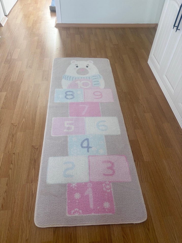 Pastel renklerde, üzerinde 1'den 10'a kadar sayıların ve ayı deseninin olduğu yumuşak çocuk oyun halısı.