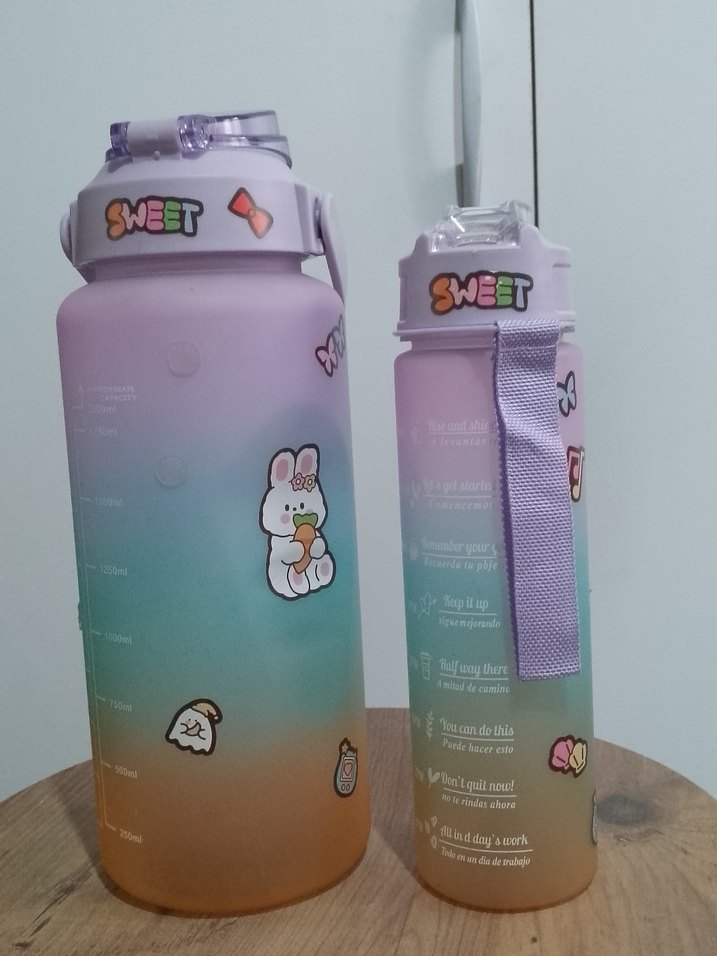 Pastel renkli çocuk termos şişeleri, eğlenceli çizgi film desenleri ve taşıma kayışlı güvenli kapak içerir. Ölçü işaretleri ve renkli degrade tasarıma sahiptir.