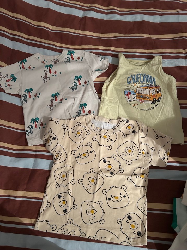 Pastel renklerde, baskılı desenlere sahip üç çocuk atleti. Hayvan figürleri, California temalı baskı ve çizgi film ayı desenleri bulunur. Yumuşak kumaşlıdır.