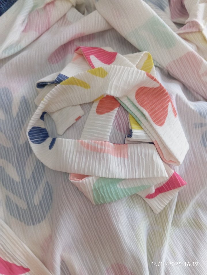 Pastel tonlarda, dokulu kumaştan yapılmış çok renkli bebek sling, bebeğinizi rahat taşımak için uygundur.