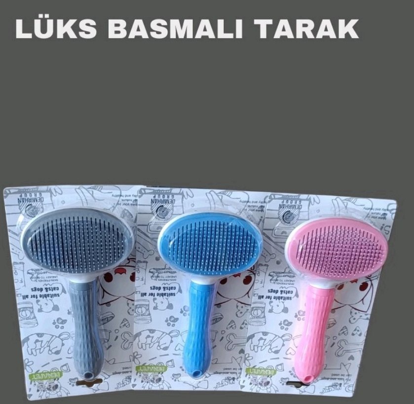 Pastel renkte, çok amaçlı kedi tüy tarakları. Yumuşak kılları ve ergonomik saplarıyla konforlu kullanım sağlar. OCR metni: 'KSBASMALITARAI'.