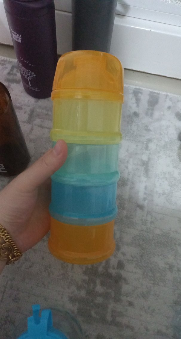 Pastel renklerde çok bölmeli, dayanıklı plastikten yapılmış bebek biberonu. Üstünde güvenli kapak bulunur. e bebek markalı çok az kullanılmış hiç bir sorunu yok mama kabi