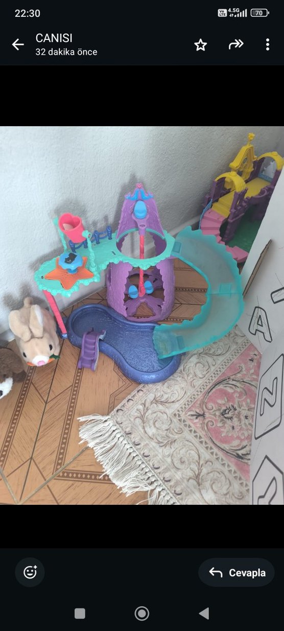 Pastel renklerde çok katmanlı oyuncak seti, kaydıraklar ve küçük havuz alanı içerir, çeşitli oyun alanları rampalarla bağlantılıdır.