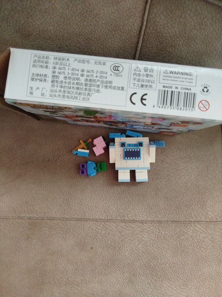 Pastel renklerde çok parçalı Lego seti, küçük figürler ve parçalar içerir. Üzerinde CE işareti ve uyarı etiketi bulunmaktadır orjinal