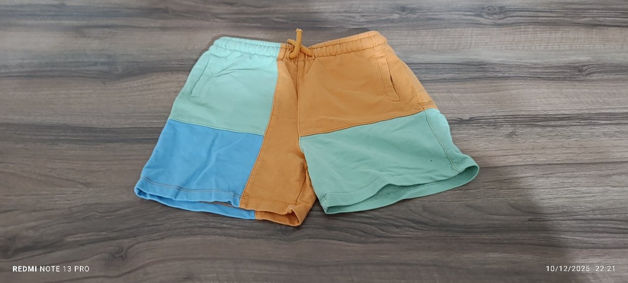 Pastel renklerde, çok renkli bağlama deseniyle bebek iç çamaşırı. Yumuşak kumaş ve lastikli bel bandı bulunur. "baby" etiketi vardır.