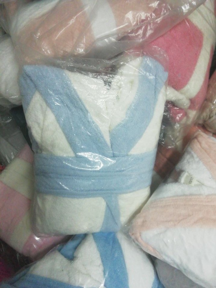 Pastel tonlarda çok renkli batik desenli bornoz, yumuşak ve emici kumaştan üretilmiştir. Rahat bir kullanım sunar.