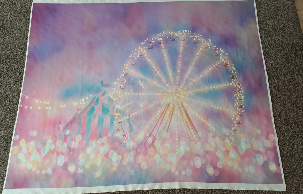 Pastel renk tonlarında, çok renkli ışıklarla süslenmiş dönme dolap temalı duvar tablosu, yumuşak ve hayal gibi bir atmosfer yaratır.