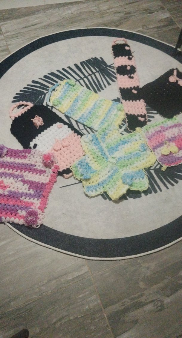 Pastel çoklu renklerde, çeşitli tığ işi desenlere sahip yumuşak banyo süngerleri seti. adet fıyatı toplu ındırım yapılır