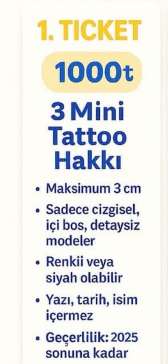 Dövme paketi almıştım şuan yaptıramıyorum ilgilenen varsa 2025 sonuna kadar geçerli izmir hatayda.