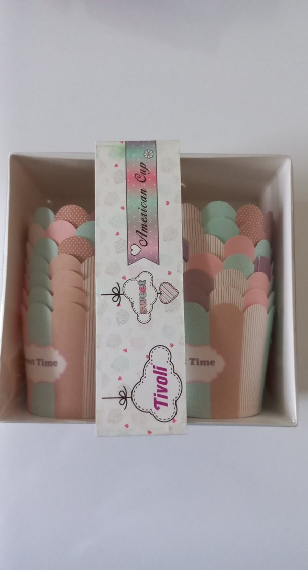 Pastel pembe tonlarda, yumuşak renkler ve zarif tasarıma sahip parti cup cake kalıpları. Yeni. Pakette. Tivoli markalı. American Cup.
