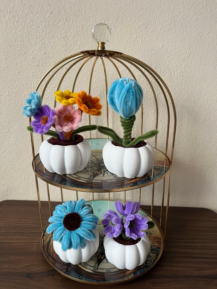 Pastel renklerde yapay çiçekler, beyaz saksılarda görsel şölen yaratıyor. İstenilen renk ve modelden yapılır.