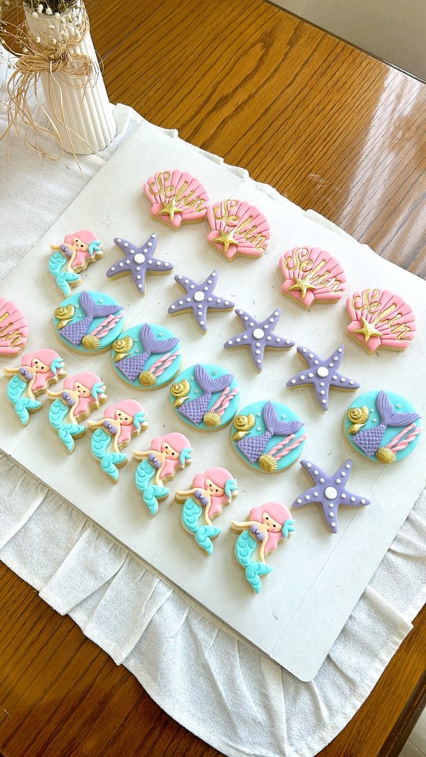 Pastel tonlarda, deniz kabukları, deniz yıldızları, deniz kızları dan oluşan kurabiye kişiye özel hazırlanır. Adet fiyatı
