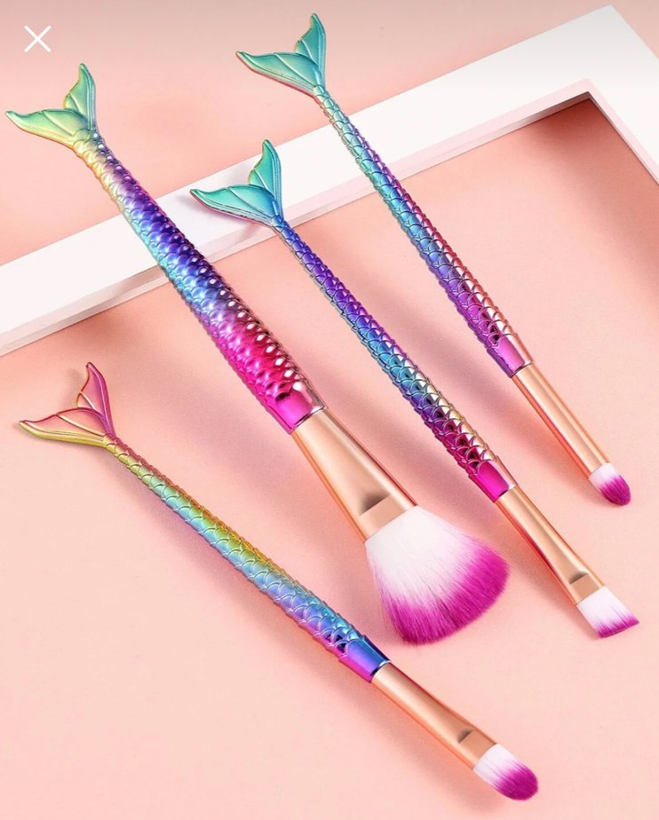 Pastel çok renkli denizkızı kuyruğu şeklinde saplara sahip, yumuşak kıllı makyaj fırça seti. ♀️