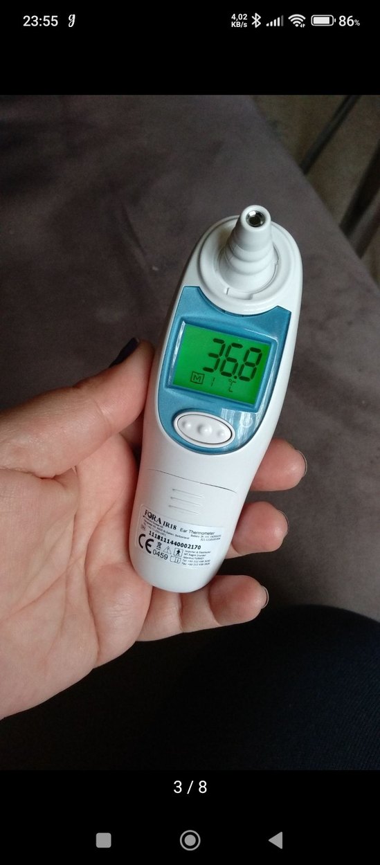 dijital kulak ateş ölçer Pastel renkte dijital kulak termometresi, 36.8°C sıcaklık göstergesi ve tek düğmeli kullanım sunar. ️
