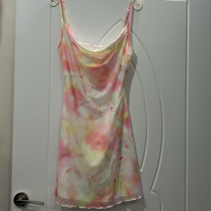 Askılı ve kolsuz, drapeli ön detaylı, uzun ve vücuda oturan bu elbise, ipeksi kumaştan yapılmış pastel tonlarda batik desene sahiptir. Yurtdışından aldım çok şık.