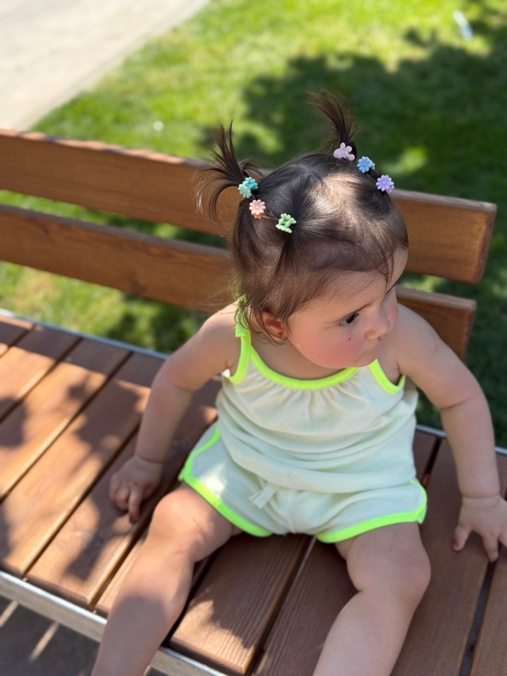 Pastel tonlarda, elastik detaylı, çok renkli bağcıklı bebek kız takimi Rahat ve şık bir tasarım sunar.