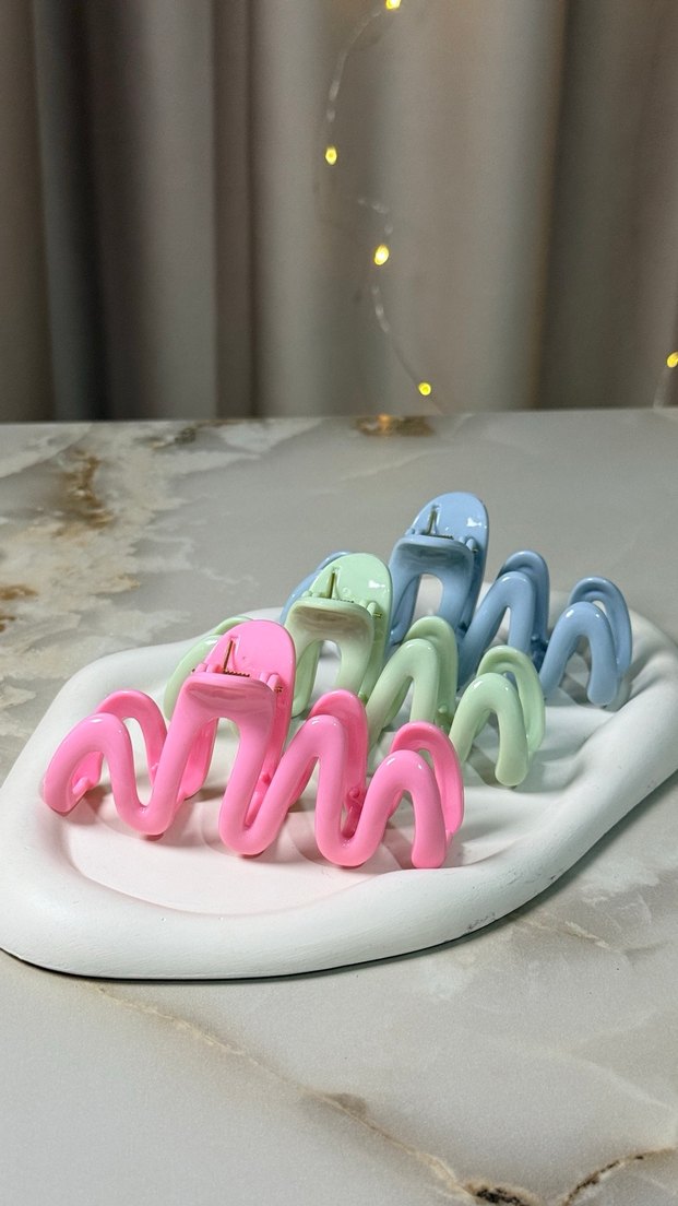 Pastel renklerde, elastik tasarımlı plastik saç tokaları, minimalist ve avangart tarzda, trend belirleyiciler için uygun.