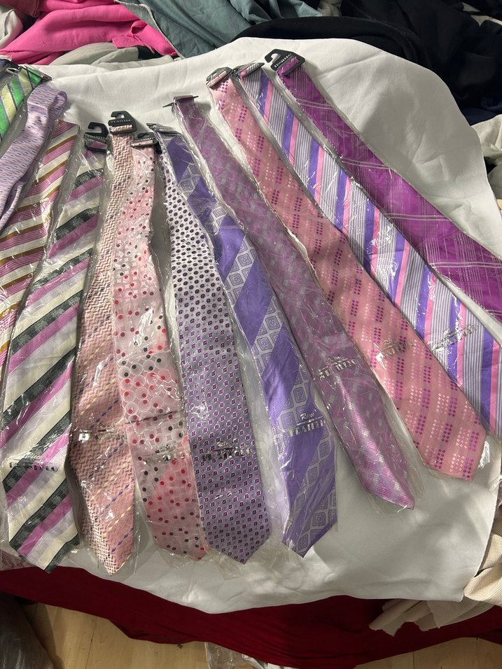 Farklı desenlerde, pastel tonlarda erkek kravatları. Çizgili, puantiyeli ve geometrik tasarımlar iş kıyafetlerine renkli ve şık bir dokunuş katıyor.