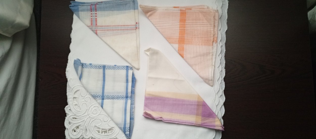 Erkek mendilleri, pastel renklerde ve minimalist tasarımla, desen içermeyen yumuşak kumaştan üretilmiştir. vintage eskilerden bayram mendilleri