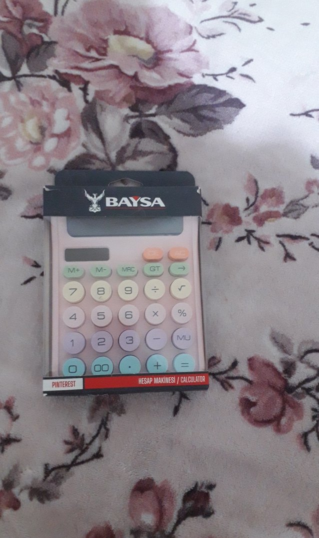 Pastel renklerde, çok renkli tuşlara sahip hesap makinesi. Kompakt yapıda ve günlük hesaplamalar için uygundur. Marka BAYSA.
