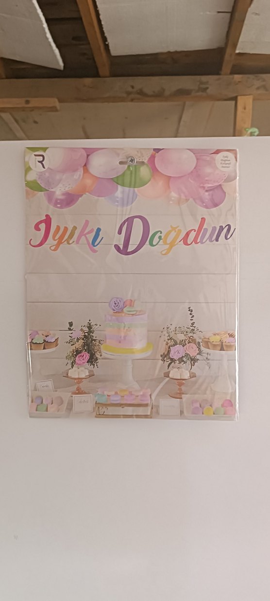 Pastel renklerde 'İyi Ki Doğdun' yazılı afiş ve balonlu doğum günü süsleri içeren parti seti .