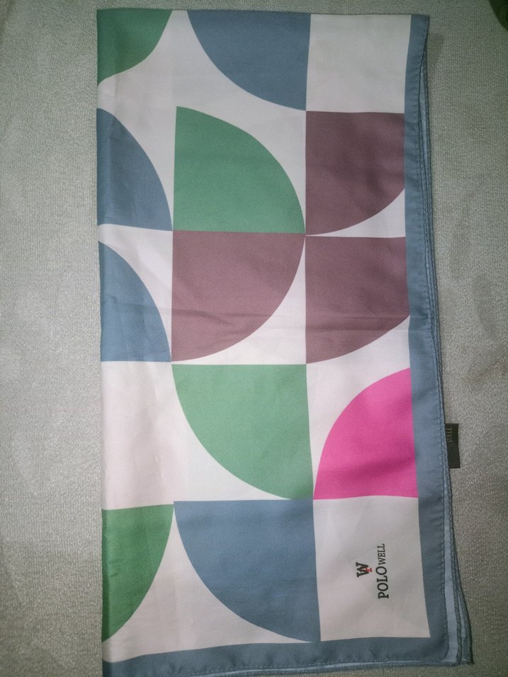 Kadınlar için pastel çok renkli geometrik desenli, yumuşak sentetik kumaştan drapeli fular, minimalist ve bohem tarzı yansıtıyor.