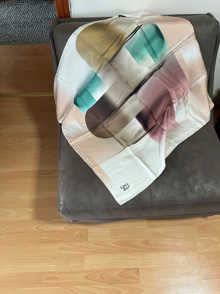 Kadınlar için pastel çok renkli, ipek dokulu, drapeli çağdaş ve minimalist tarzda fular.