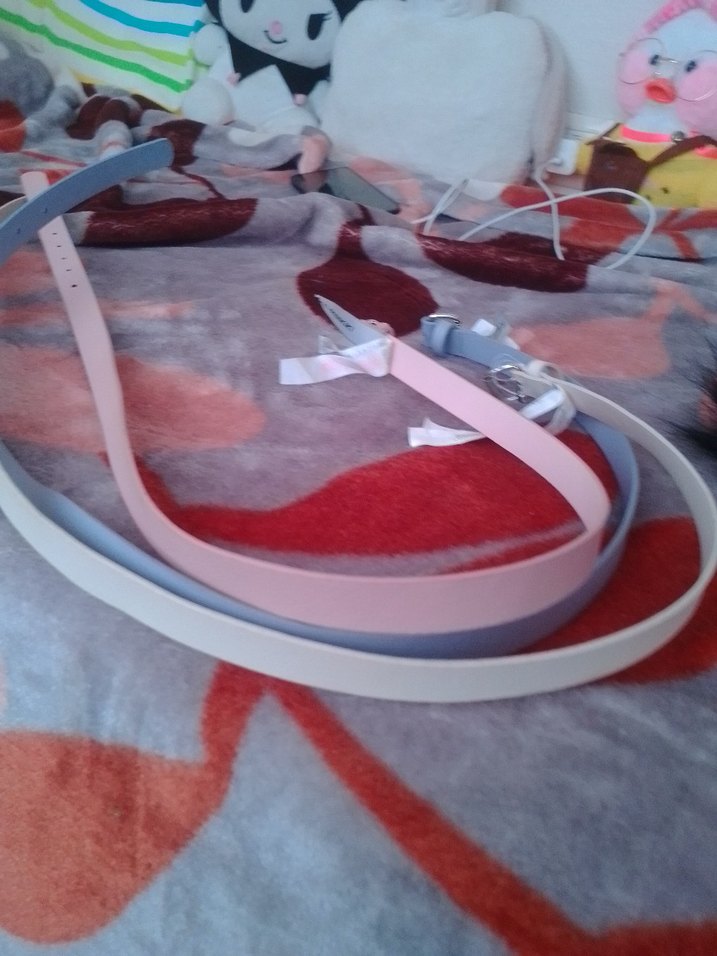 Pastel tonlarda, plastik malzemeden yapılmış, kurdele detaylı kadın kemeri, minimalist sokak modasına uygun.
