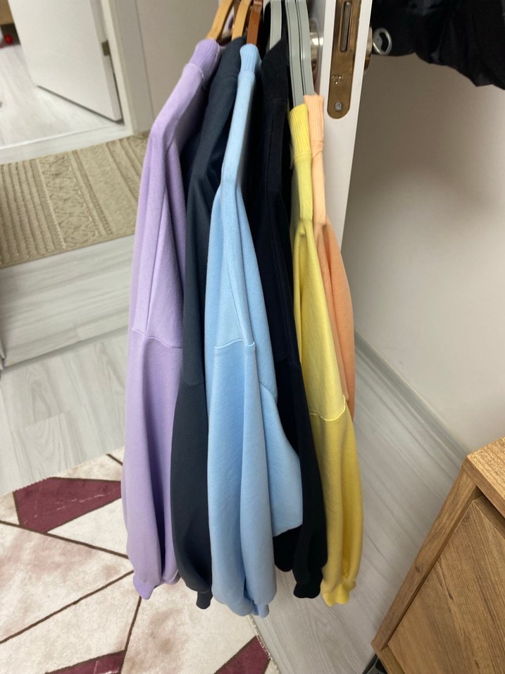 Pastel renkli, pamuklu kumaştan üretilmiş, uzun kollu ve yuvarlak yakalı, bol kesim kadın sweatshirt. Günlük kullanıma uygun, desensiz rahat bir modeldir. ☁️ Adet fiyatıdır çoklu alımda yardımcı olabilirim. Sıyah füme buz mavi somon lila sarıdan oluşmak üzere 6 renk elimde mevcuttur yeni gibidir.