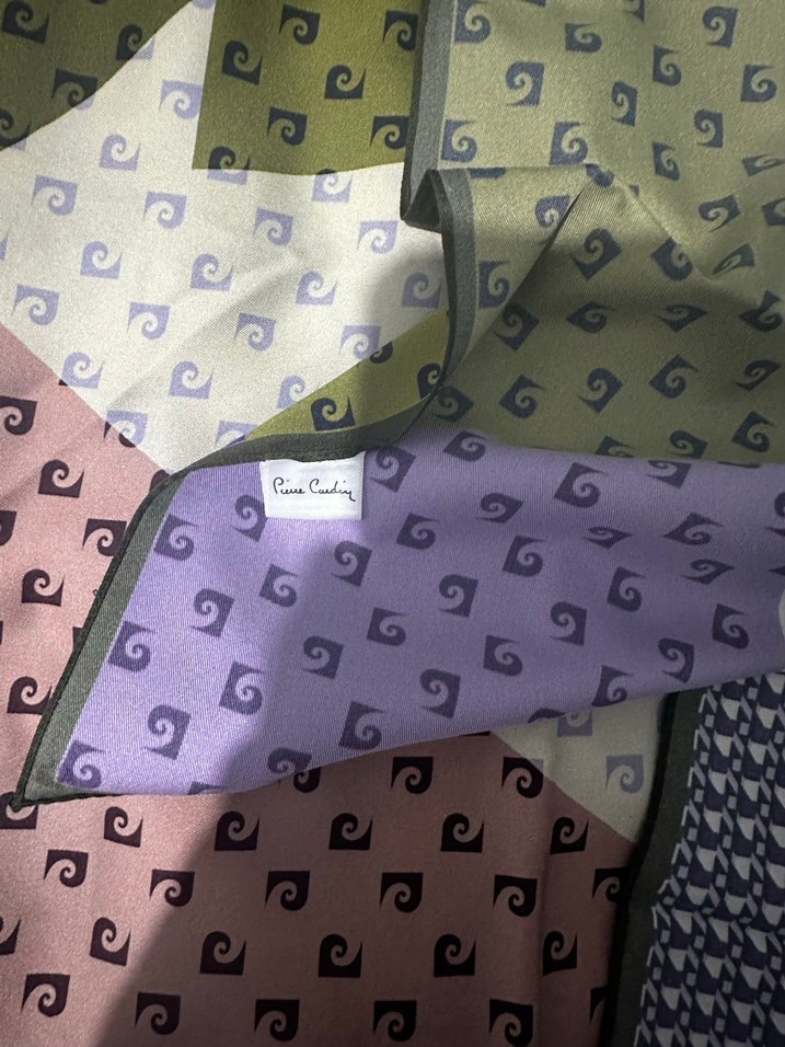Kadınlar için pastel tonlarda çok renkli eşarp, yumuşak sentetik kumaştan, şık kurdele detayı ve Pierre Cardin etiketiyle kültür tarzını yansıtıyor. Hiç kullanılmadı yenidir