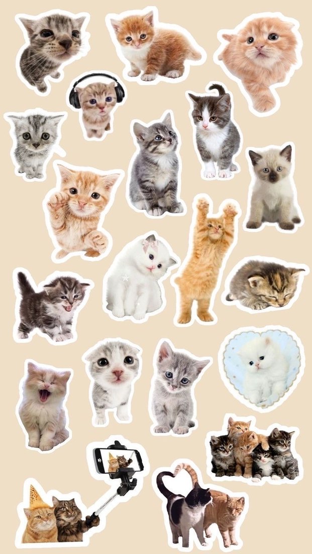 Pastel kahverengi tonlarında çeşitli sevimli kedi figürlerinden oluşan sticker seti, defter ve aksesuarları süslemek için uygundur.