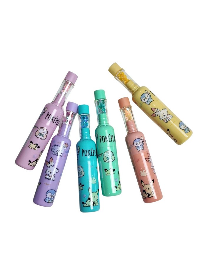 Pastel renklerde, sevimli karakter desenlerine ve 'POKERE' yazısına sahip kalem seti ✏️.