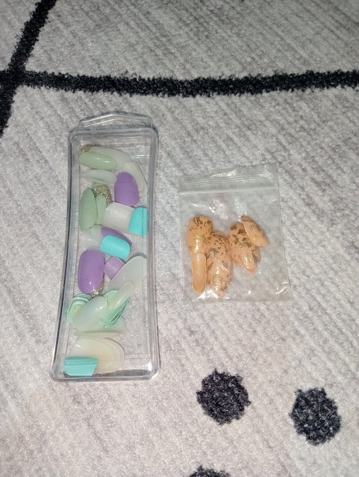Pastel tonlarda, çeşitli şekil ve boyutlarda takma tırnaklar. bazıları kullanılmıştır. marka temsilidir