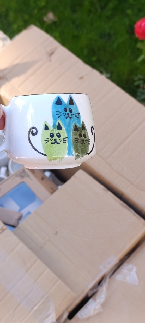 Pastel renklerde, mavi, yeşil ve kahverengi üç kedi desenli seramik kupa. Yuvarlak şekli ve rahat tutma sapı ile sıcak içecekler için uygundur. Hayvan severler ve Sunumlarında farklılık isteyenler için. El yapımıdır. Alım yapmadan önce lütfen iletişime geçiniz. Stoklarla sınırlıdır. Acele edin