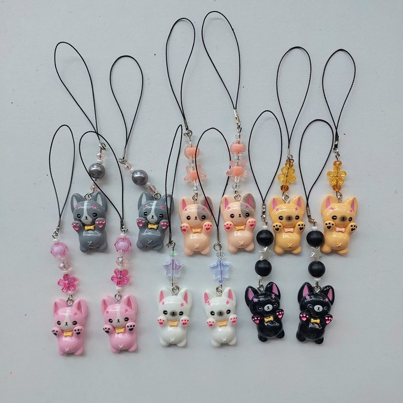 Pastel renklerde çeşitli kedi figürlü telefon askıları, boncuk ve süslemelerle dekore edilmiştir. Aksesuarlarınıza sevimli bir dokunuş katar. tane 40 tl