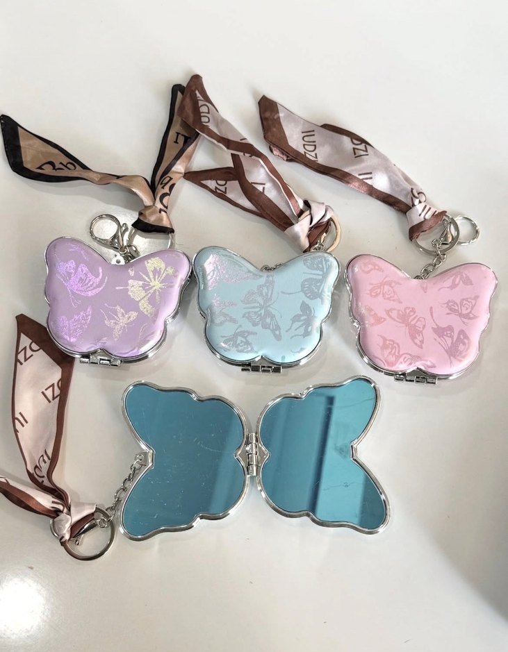 Pastel renklerde kelebek şeklinde anahtarlık, kurdeleli ve açıldığında küçük bir ayna içerir. Paris ve bohem tarzını retro dokunuşla birleştirir.