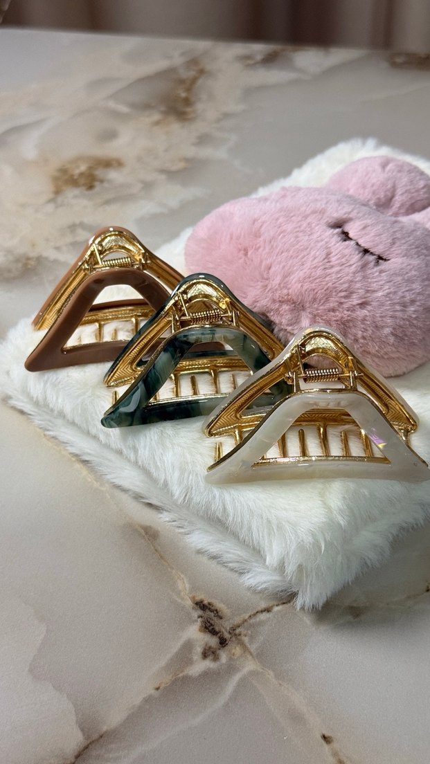 Üçlü set halinde, altın detaylı, pastel renklerde, kürk detaylı modern kadın saç tokaları. Klasik ve zarif bir görünüm sunar.