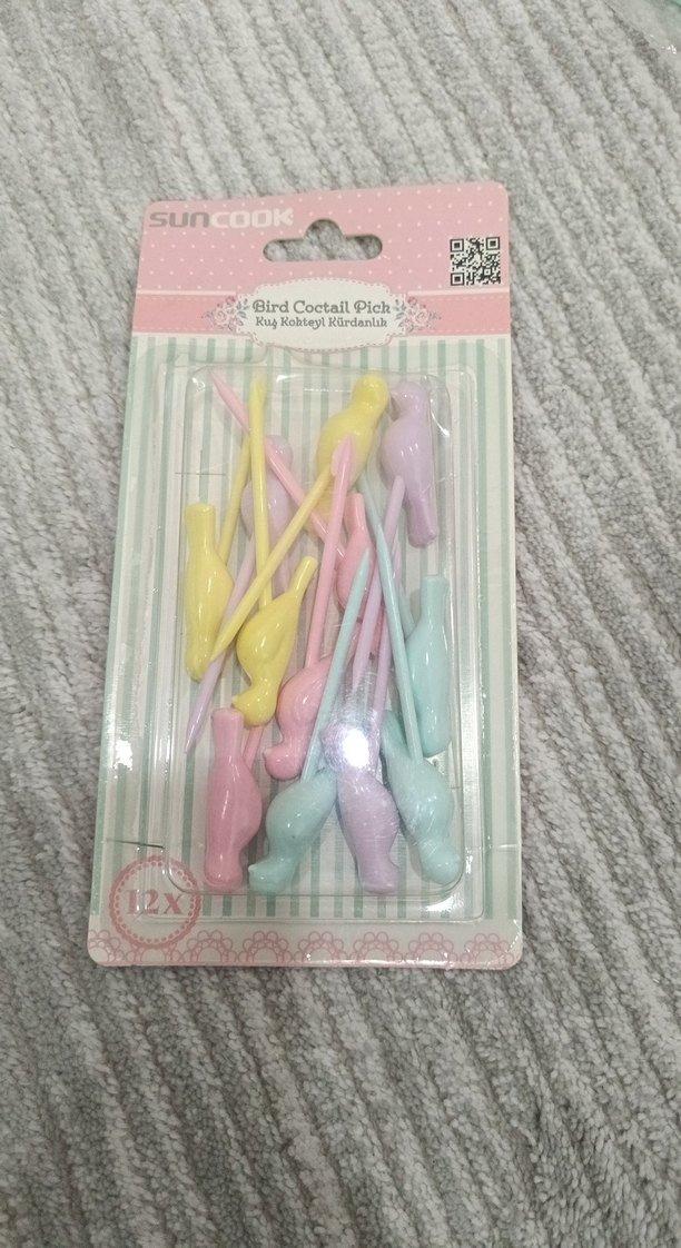 Pastel renklerde, kuş şeklinde çok renkli kokteyl kürdanları. Pakette 12 adet bulunur.