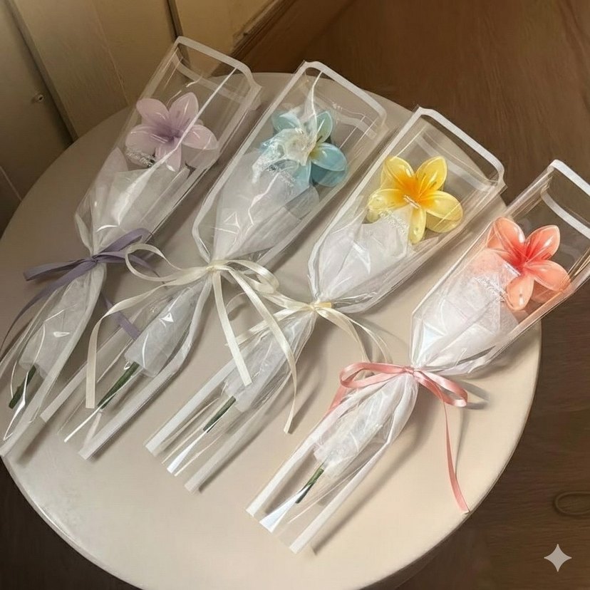 Şeffaf plastikle sarılmış, kurdele bağlamalı pastel renkli toka çiçekler, hoş hediyelik olarak sunulur. 8mart kadınlar günü için şuan indirimdedir.istediğiniz şekilde tasarlanır .Detaylı bilgi için instg:zeryydesign İletişime geçebilirsiniz